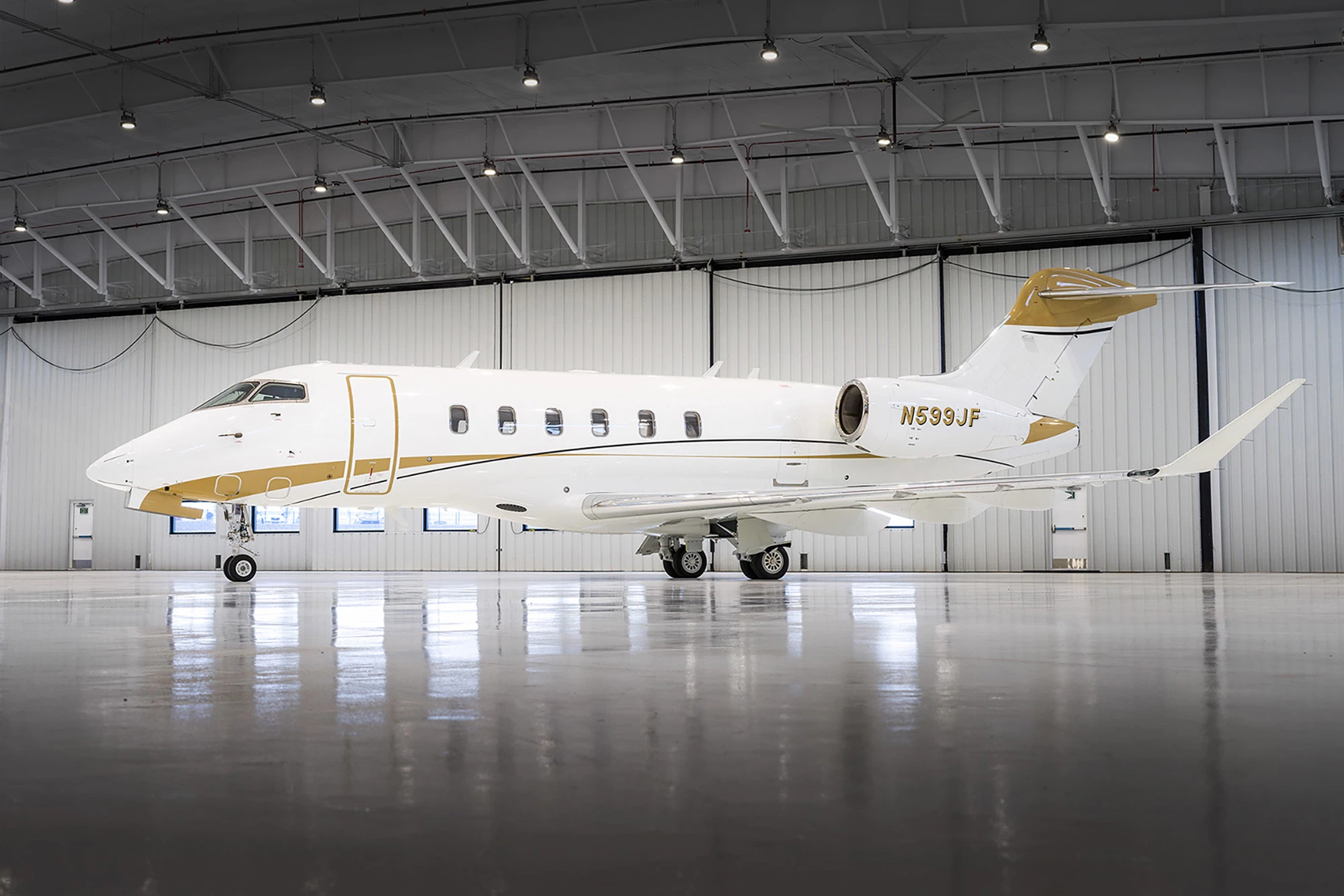 This Challenger 350 features a refined, modern cabin designed for comfort and productivity. The configuration accommodates 8 passengers plus a belted lavatory seat, offering flexible seating options (9 Pax TTOL).