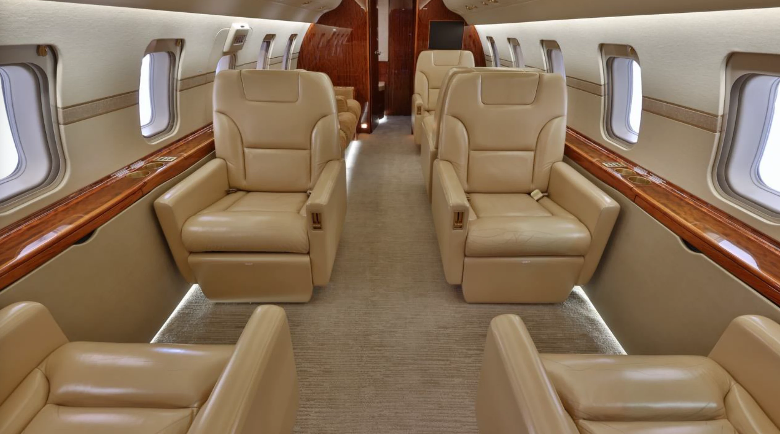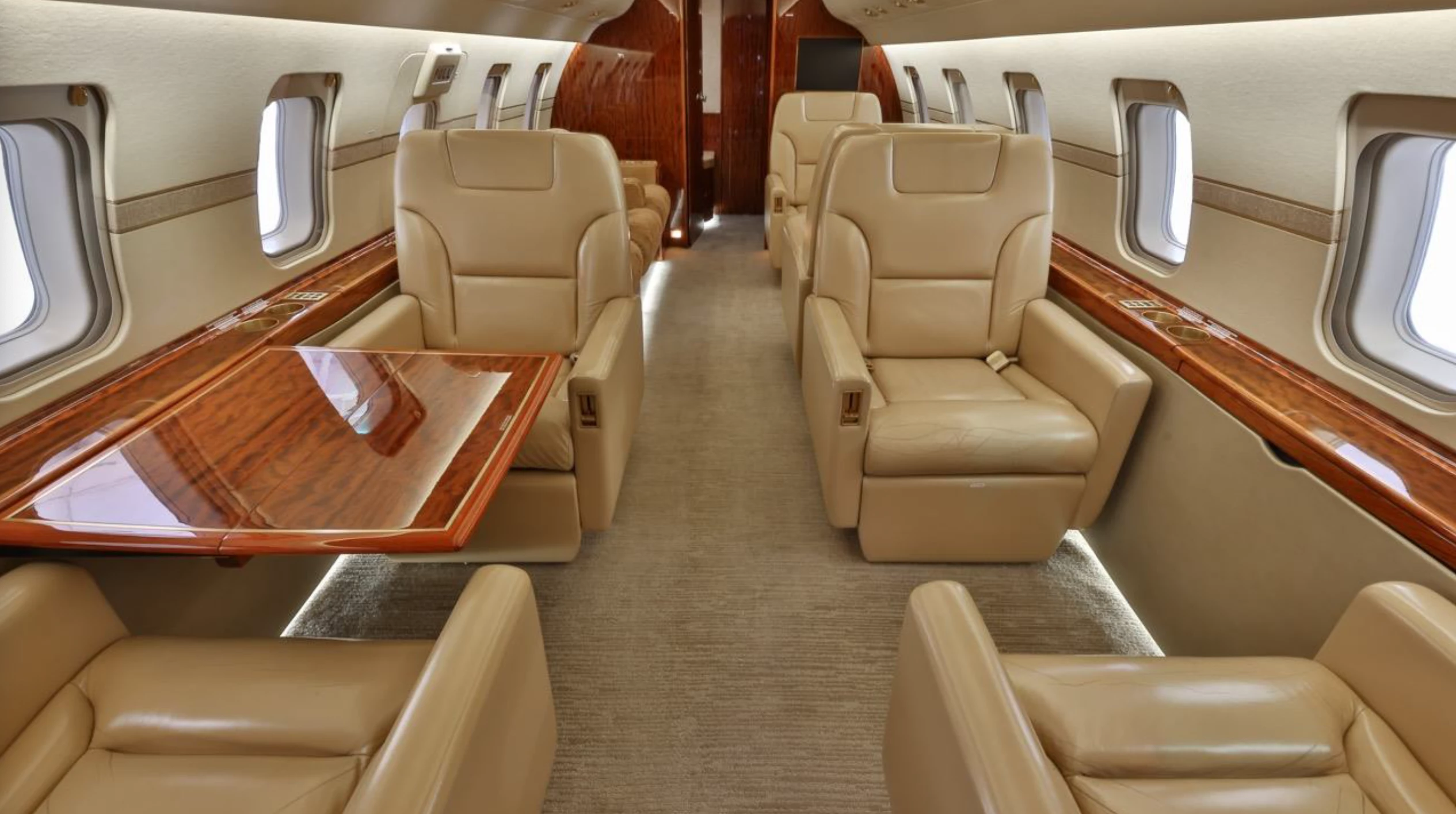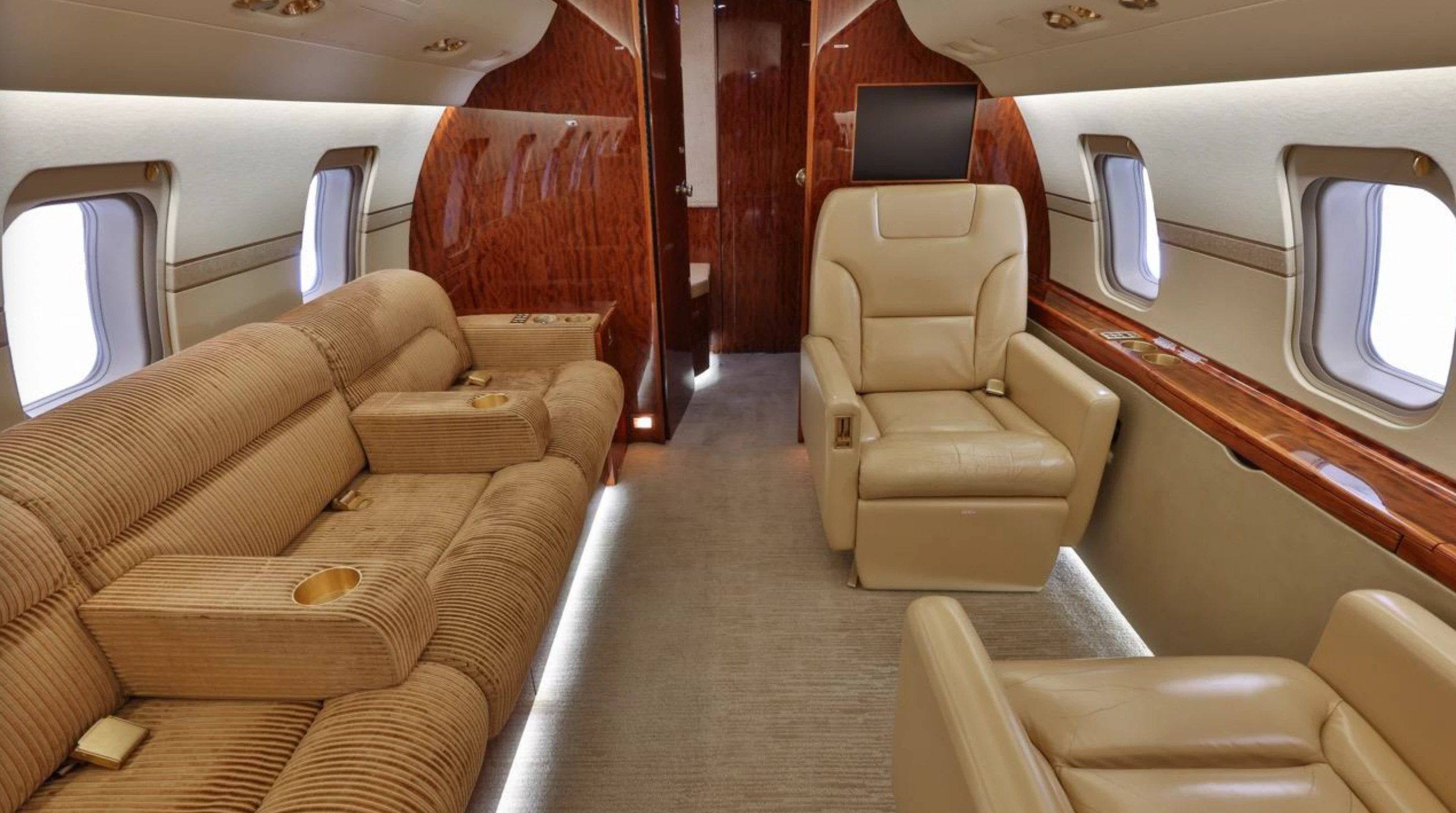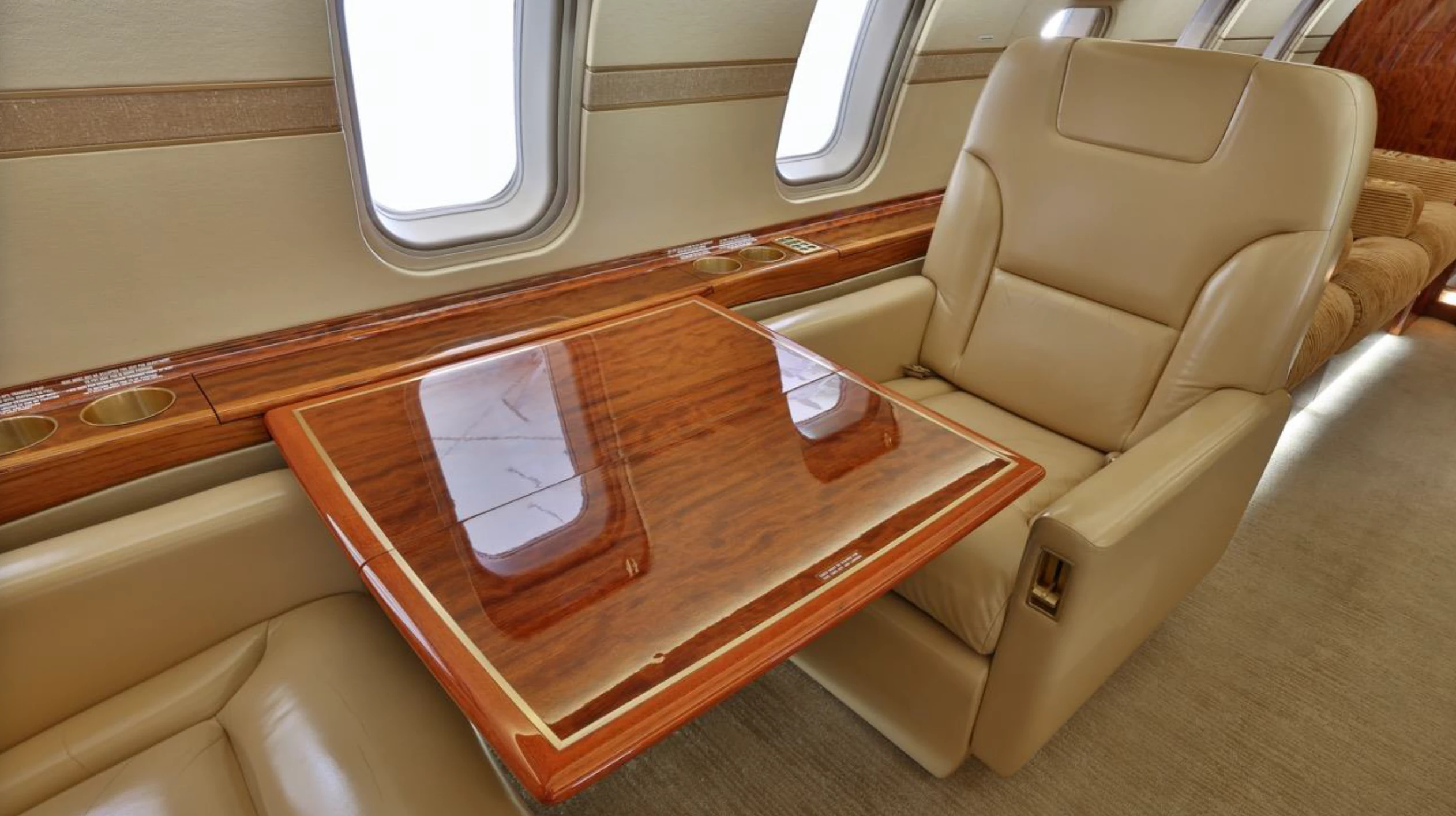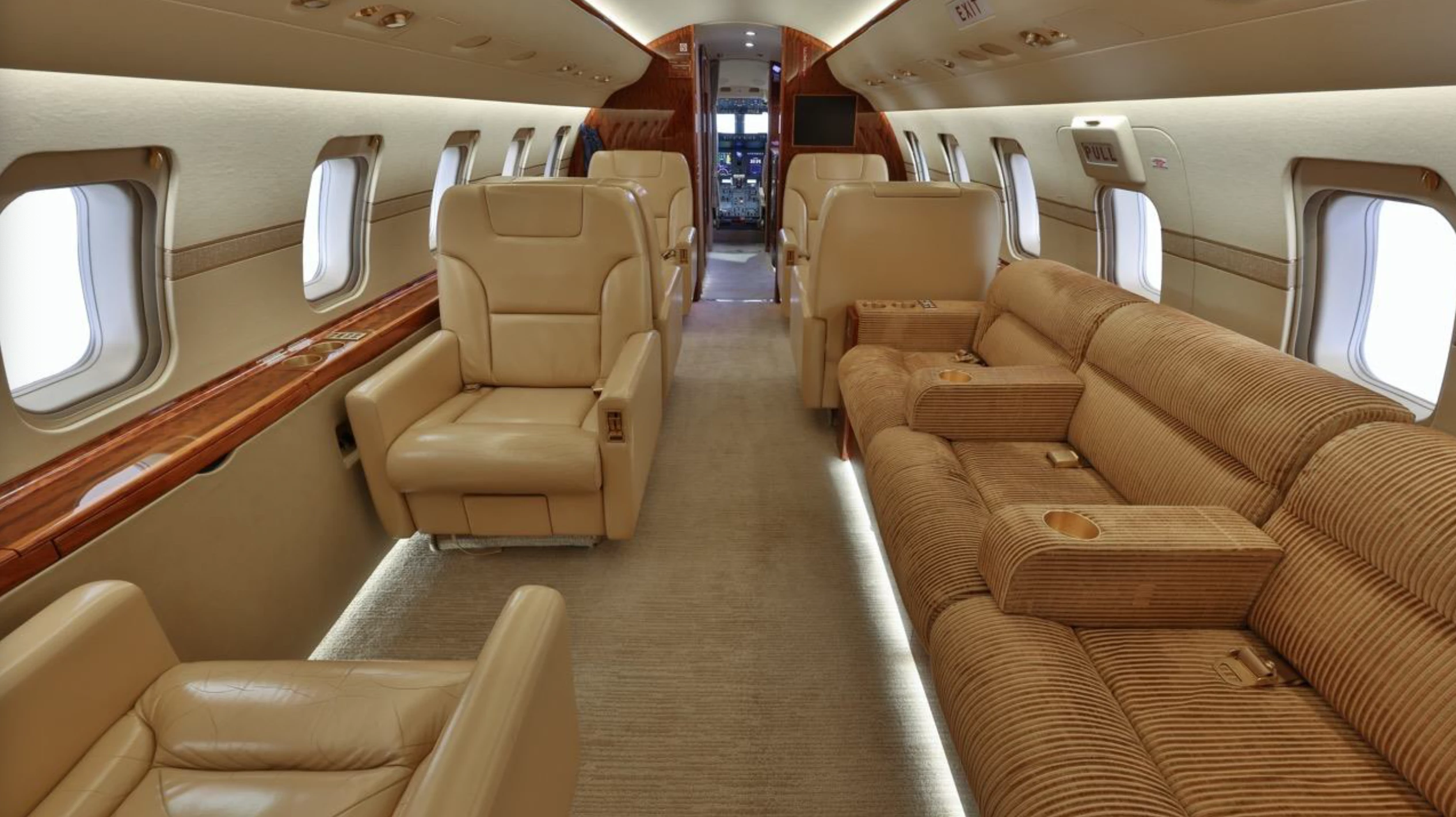 9 passengers. Forward 4-place club, aft 3-place divan opposite a 2-place club, jumpseat (certified for take-off &