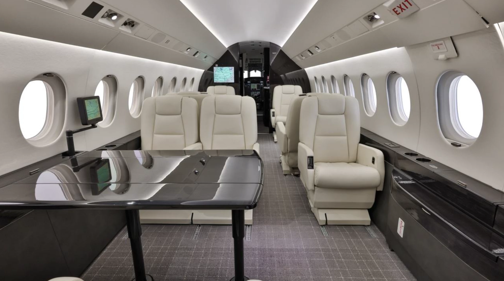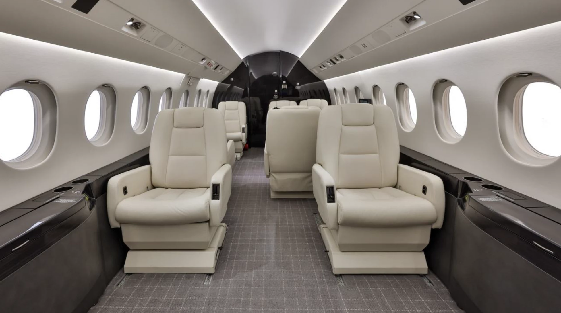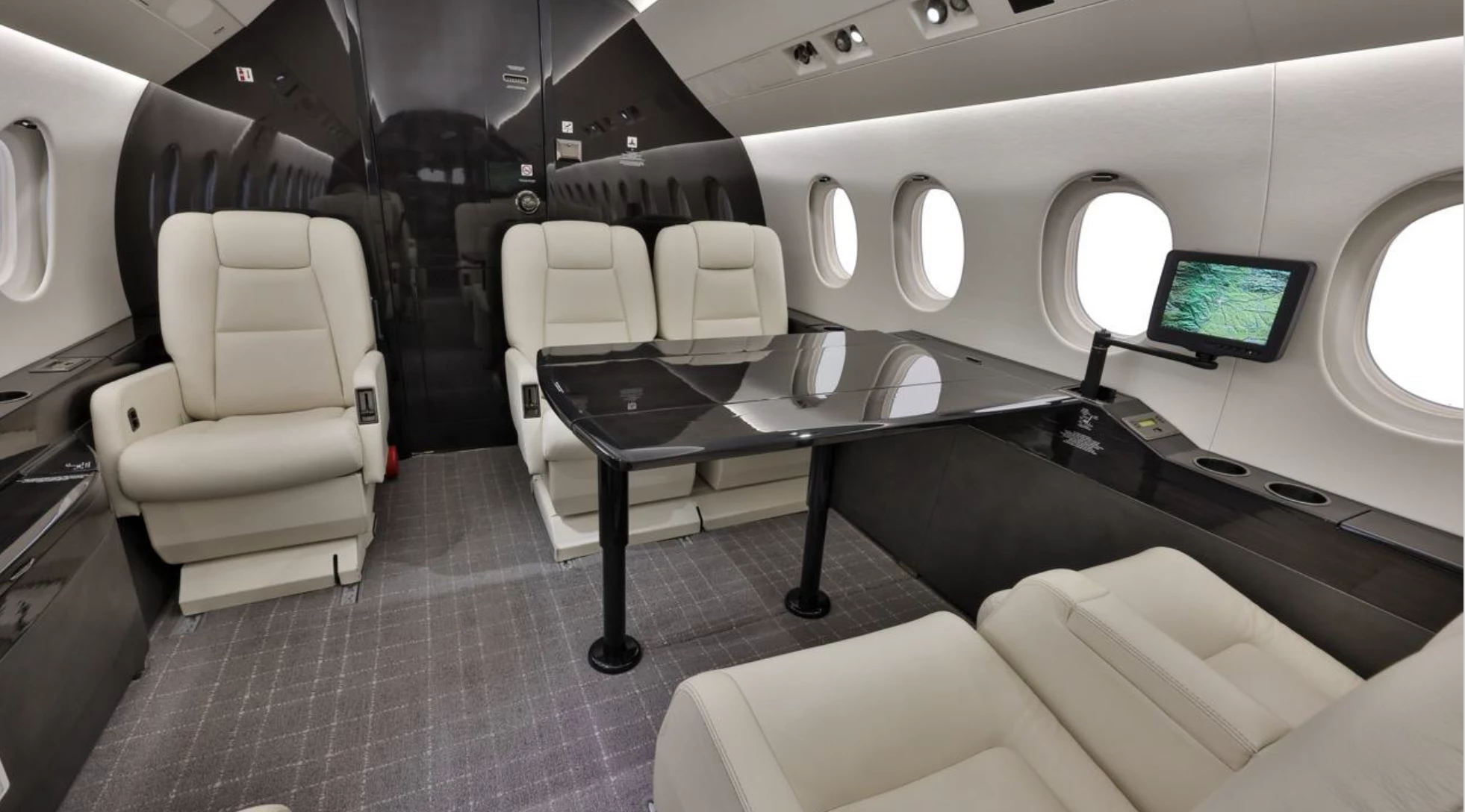 two (2) seats on RH side, forward and aft facing. LH side has four (4) place conference group seating. The cabin is
