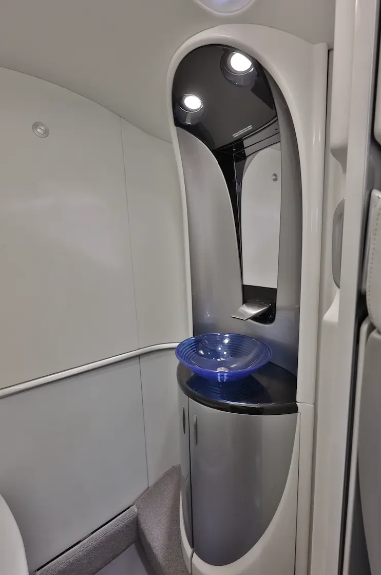 Belted Lav seat with distinctly designed Skylights within Lavatory